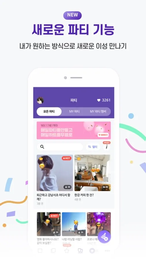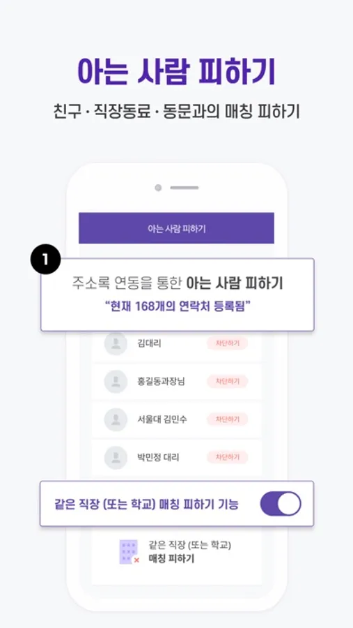 • 지인 피하기 기능을 통해 지인, 회사사람 피하기 100% 가능