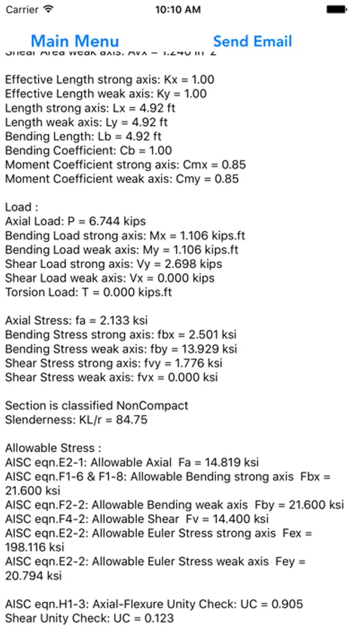 User could customise section’s size and design parameter, the program have function to compile the Calculation Report and send it through email. Format of the Report is suitable for standard miscellaneous structure design calculation.
