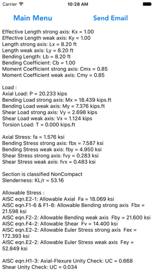User could customise section’s size and design parameter, the program have function to compile the Calculation Report and send it through email. Format of the Report is suitable for standard miscellaneous structure design calculation.