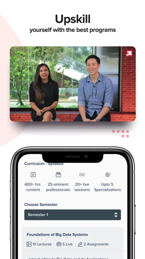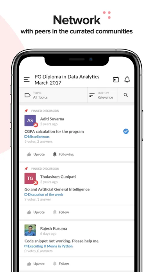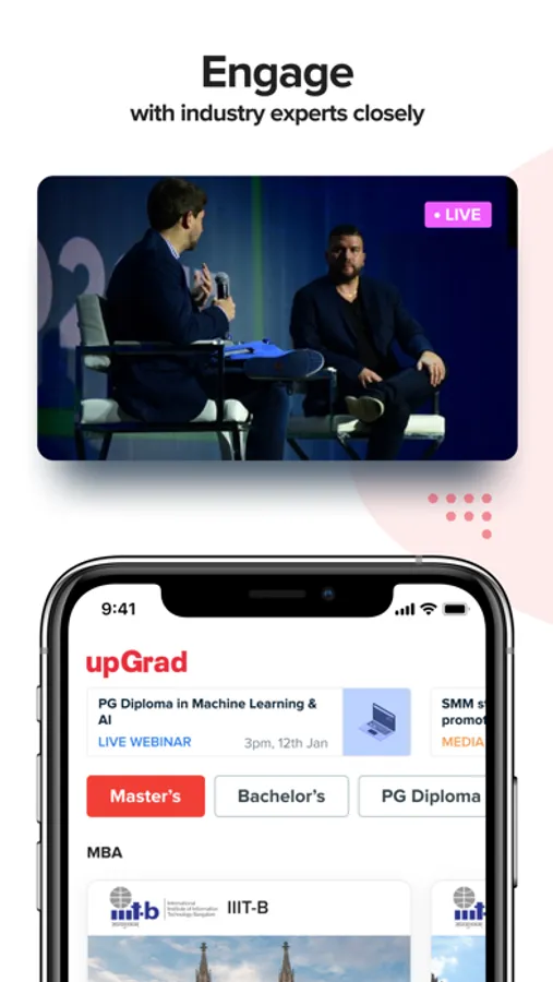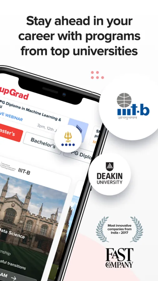 Right from MBA, M.Sc., or other PG degrees, to Bachelor's degrees, the upGrad app has it all! Explore programs in the field of Management, Data Science, Machine Learning, Software Engineering, Digital Marketing, SEO, Blockchain, Analytics, Product Management, Big Data, and more. Interact with professionals, master Kaggle competitions, network with like-minded professionals, all of it, in one app!