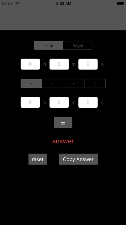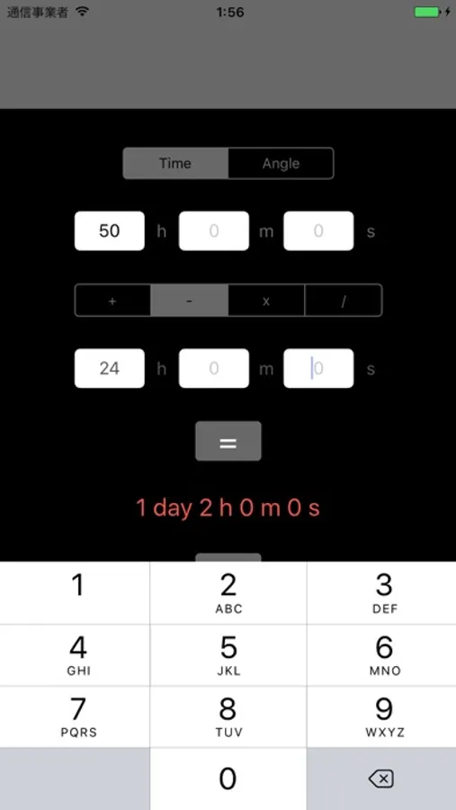you just choose [time/angle] mode and [+,-,x,/] mode and input numbers.