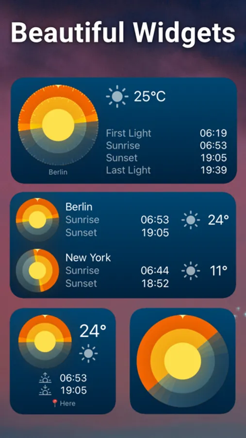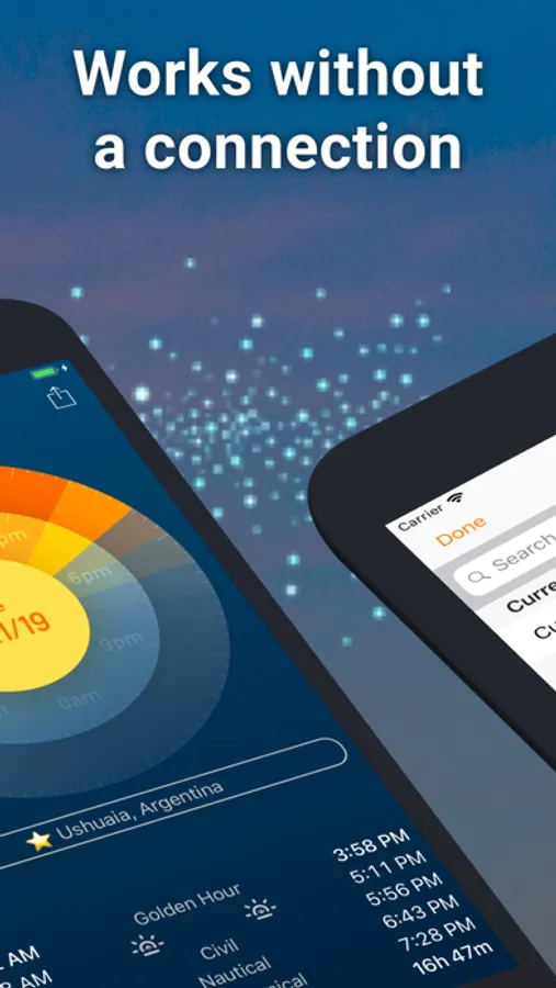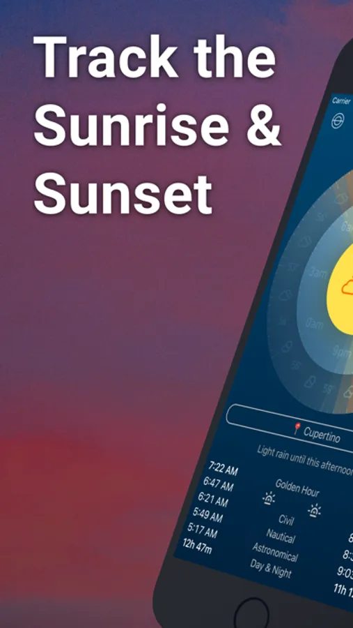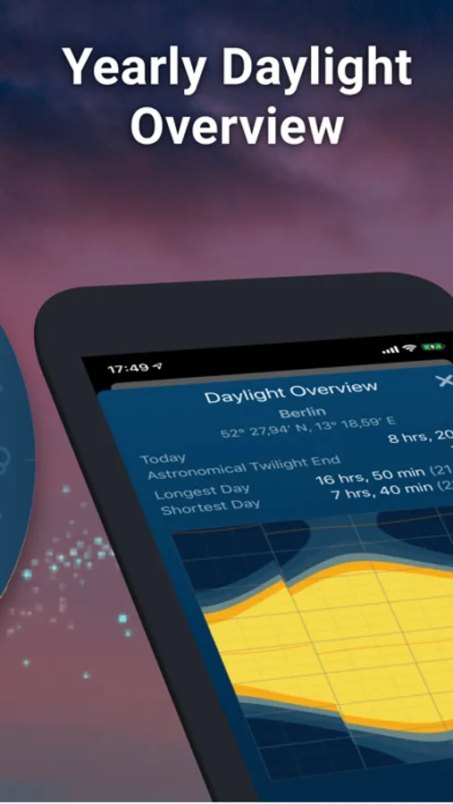 - Instant sun-tracking: Get accurate times for sunrise, sunset, and twilights, as well as a yearly overview of daylight and solar events, so you can stay on top of your day, no matter what.
