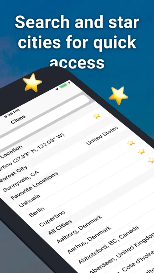 - Customizable solar alarms: Set up alarms that trigger at the chosen solar event, so you never miss a perfect moment again.