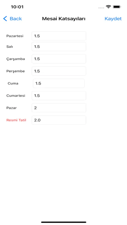 Ayarlar menüsündeki katsayı seçeneklerini kendinize göre değiştirebilirsiniz.