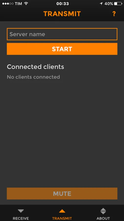 Click the button “Start” below the text input field to start the server. As soon as you start the server, you can connect your receivers. Your audio signal is broadcasted as soon as you start the server.