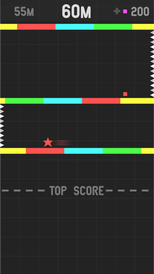 Slide your way up the rainbow, jumping from level to level through the colored gates. Time your jump and WATCH OUT for the SPIKES!