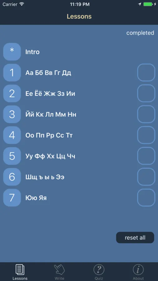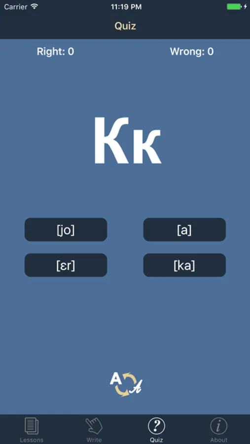 After covering each lesson with tiny flashcards and a pronunciation guide, a multiple choice quiz will help you test what you've learned. With its simple interface you can learn the alphabet in a few days.