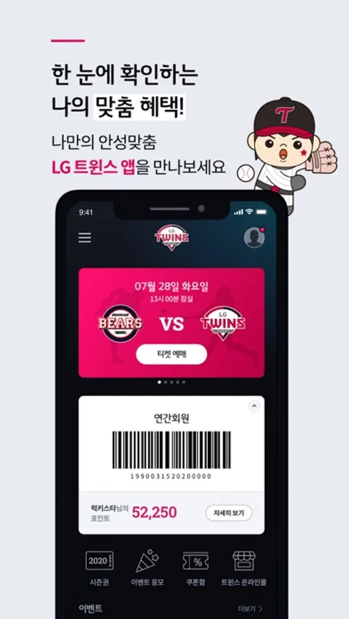 - 티켓예매 일정, 진행 중인 이벤트, 트윈스 소식 확인