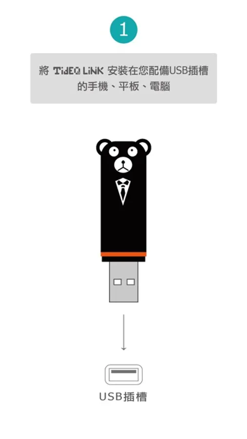 步驟三:將TideQLink產品插頭連結接收裝置(手機/電腦/平板)的USB插槽
