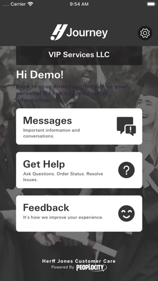 HJ Journey is a private, 2-way messaging app. It’s your direct connection to your personal Herff Jones graduation specialist. No email. No webforms. No waiting on hold. Use the app to manage your order, get your questions answered, and stay up to date on important graduation information.