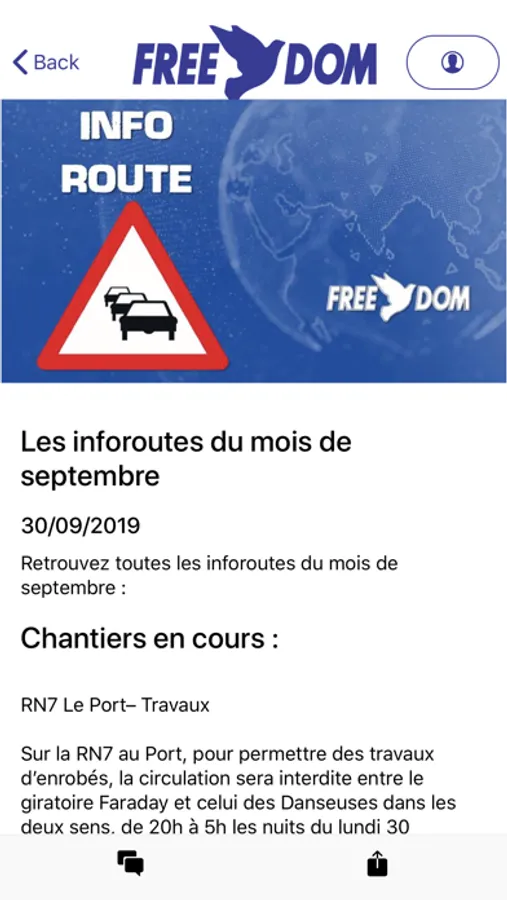 Restez connectés à l'actualité de la Réunion et aux événements majeurs dans le monde. Ecoutez Free Dom 1 et Free Dom 2 en direct partout dans le monde. Mise à jour en temps réel de l'information sur votre mobile