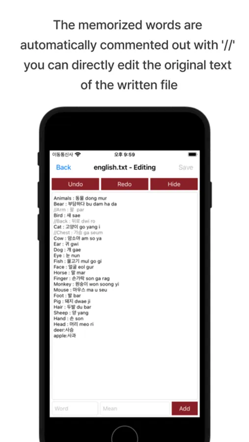 4. You can copy the text file of the wordbook as it is, so you can easily share it using the SMS and SNS application between devices.