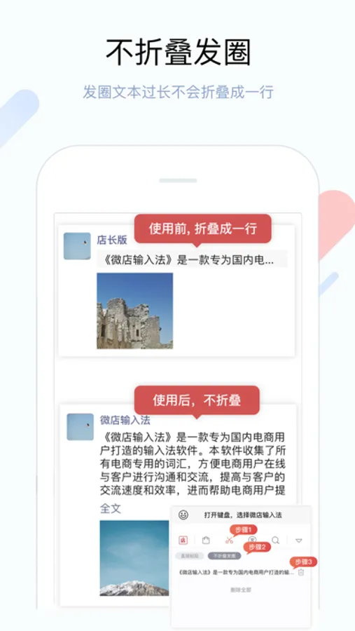【不折叠发朋友圈】发朋友圈的文本过长不会被折叠成一行(复制文本 - 输入法 - 剪贴板"剪刀图标" - 选中不折叠发圈 - 点击你所复制);