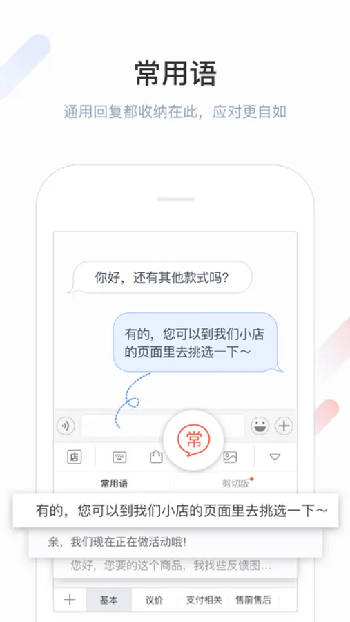 【常用语】可将产品介绍,联系方式等添加到常用语,聊天的时候一键发送,无需反复编辑;