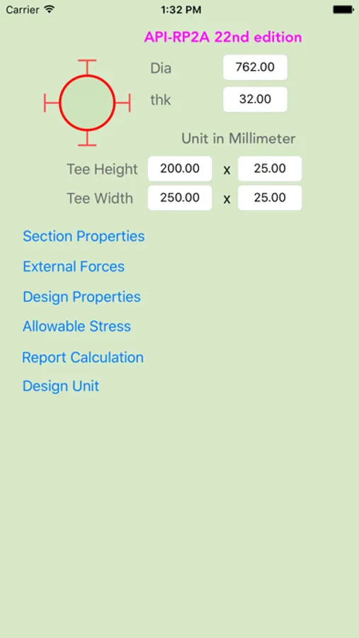 Apps for design and validate unity check of Tubular’s section that have been strengthen with 4 nos of Tee section, unity check is the ratio between actual stress compare to allowable stress in accordance with Code and Standard.
