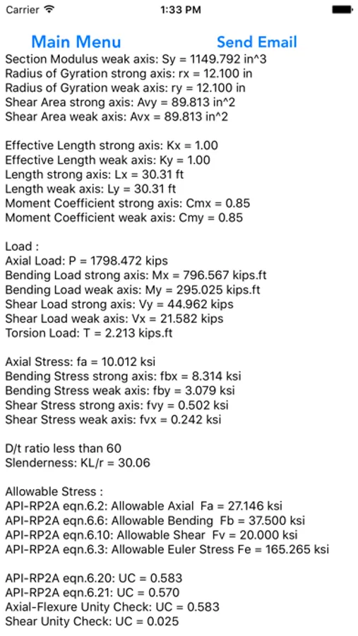 User could customise section’s size and design parameter, the program have function to compile the Calculation Report and send it through email. Format of the Report is suitable for standard miscellaneous structure design calculation.