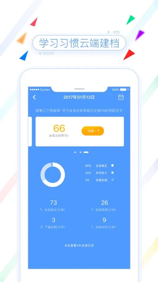 不管孩子什么时候开始学习、什么时候结束学习、坐的是否端正,魔灯魔豆real都能为您记录孩子学习的实时变化。学习详细数据支持分享QQ和微信朋友圈,满足您小小的自豪感。
