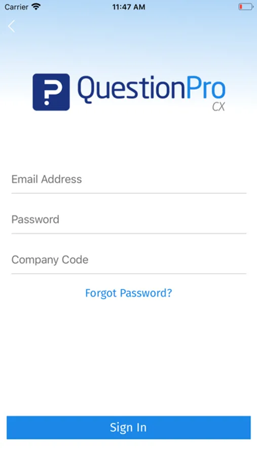 Using the QuestionPro Customer Experience application is quite easy, simply enter the email address, password registered with QuestionPro and enter the access code which can be added from the Customer Experience account.
