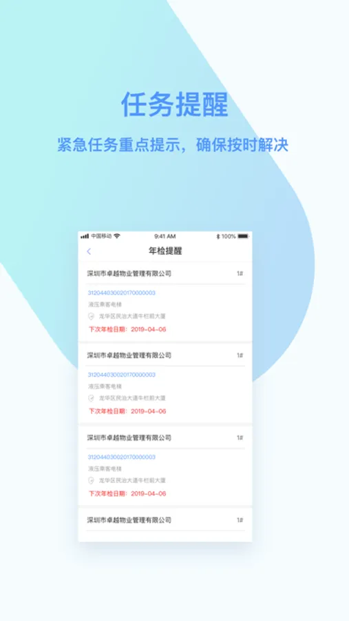 1、任务提醒:对当天的维保任务进行重点提示,确保维保人员按时维保