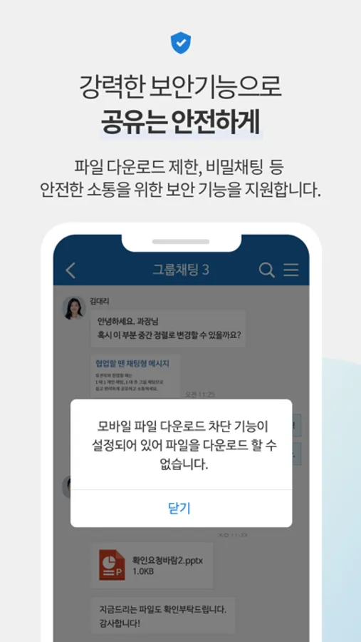 비밀 채팅은 기본, IP대역에 따른 메신저 실행 제한,