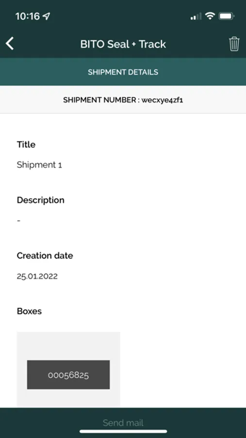 The shipper then sends an e-mail to the recipient with a link that displays all scanned code numbers. The receiver can also download the numbers into his app on his smartphone.