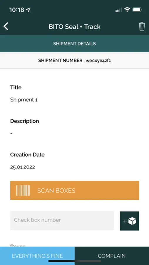 When the goods are received, the barcode seals are scanned again by the receiver via the Seal+Track app and automatically synchronized with the barcode data of the sender. If a number matches, a green hook appears behind it, if the hook does not appear, this points to a manipulation of the corresponding container on the transport path.