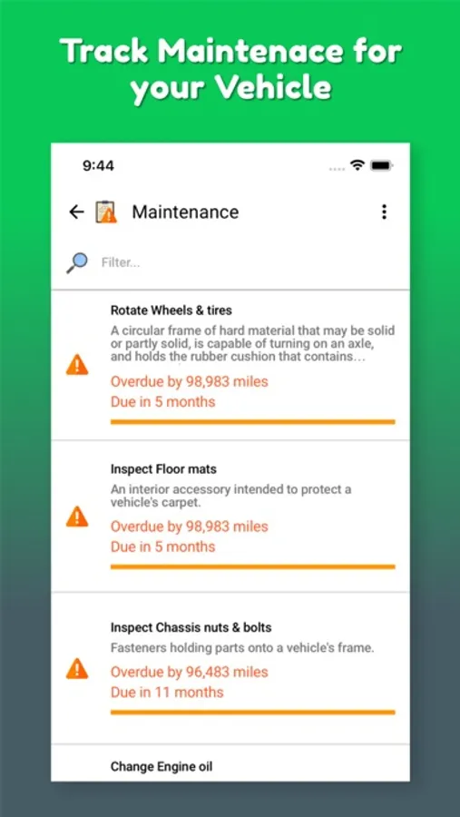 ○ Maintenance schedule for the car - including oil change, tire rotations, transmission fluids, + more