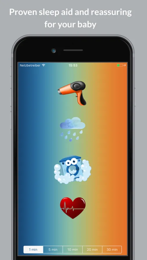 Then try this app, with four sounds (hair dryer, washing machine, rain and heartbeat with noise like in the womb) help your baby to calm down quickly.