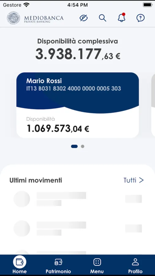 L’App di Mediobanca Private Banking, consente di consultare in qualsiasi momento la situazione del proprio conto corrente e stato patrimoniale e, laddove sia stata scelta la modalità dispositiva, anche di effettuare pagamenti.