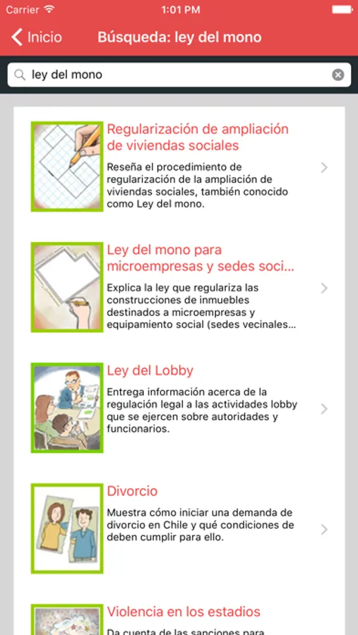 Servicio de la Biblioteca del Congreso Nacional de Chile a través del cual se presenta en diversos formatos y en un lenguaje sencillo, mediante preguntas y respuestas, los principales contenidos de diversas leyes chilenas en temas tales como: Administración Pública, Consumidores, Cultura, Defensa, Derechos Humanos, Discapacidad, Educación, Empresas, Familia, Formación Cívica, Impuestos, Justicia, Medio Ambiente, Organizaciones Sociales, Salud, Seguridad Social, Trabajo, Transporte, Vivienda.