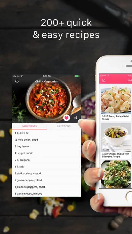 - On the fly search recipes by ingredients or dish name