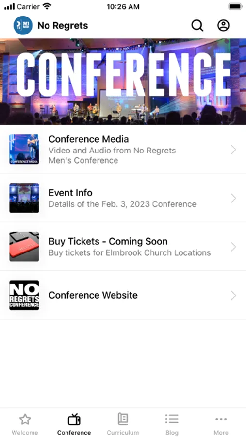 The annual No Regrets Christian men's conference, on the first Saturday in February, seats 4000 men at Elmbrook and reaches more than 10,000 men at host sites scattered across North America. This new kind of conference technology makes it possible for churches of any size or location to reach more of their own men. This app includes free conference video platform messages and free audio breakout sessions that can be used over and over again in your men's ministry.