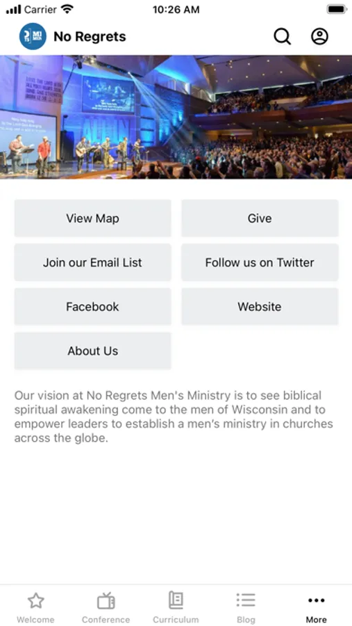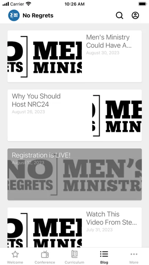 The No Regrets Men's Ministries App was created with the Subsplash App Platform.