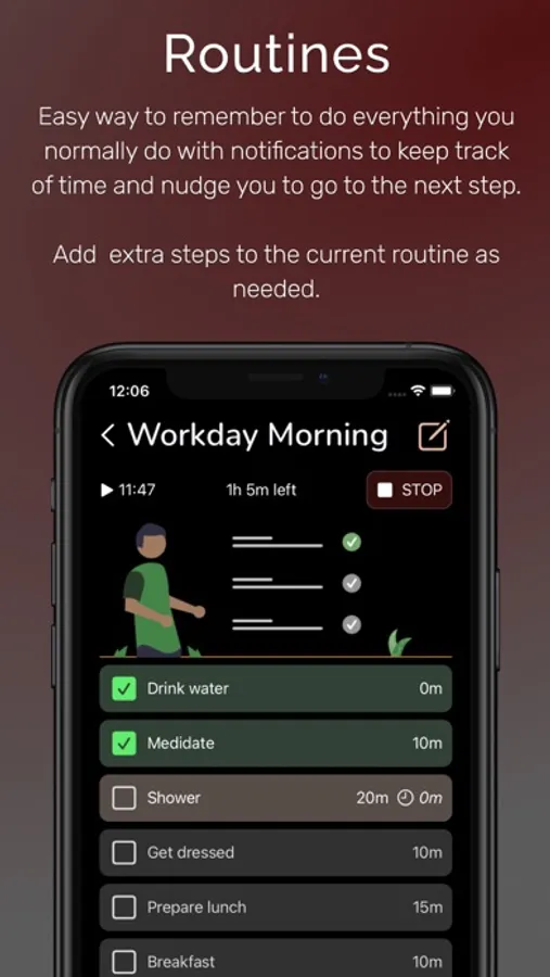 You can also create routines to make it easier to keep track of time when you do a group of tasks together in a defined time, like the steps to get ready for work or a workout at the gym.