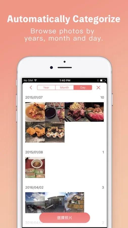Our App offers multiple ways to backup. One-click backing-up, selecting by year, month and date or selecting the photos you would like to make your personal albums.