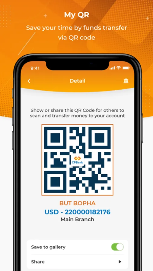 • Fund transfer: Instantly fund transfer to CPBank account, Fund transfer to local bank and international bank, Koica transfer to bank account and mobile number, Bakong transfer to Bank account and Bakong e-wallet transfer