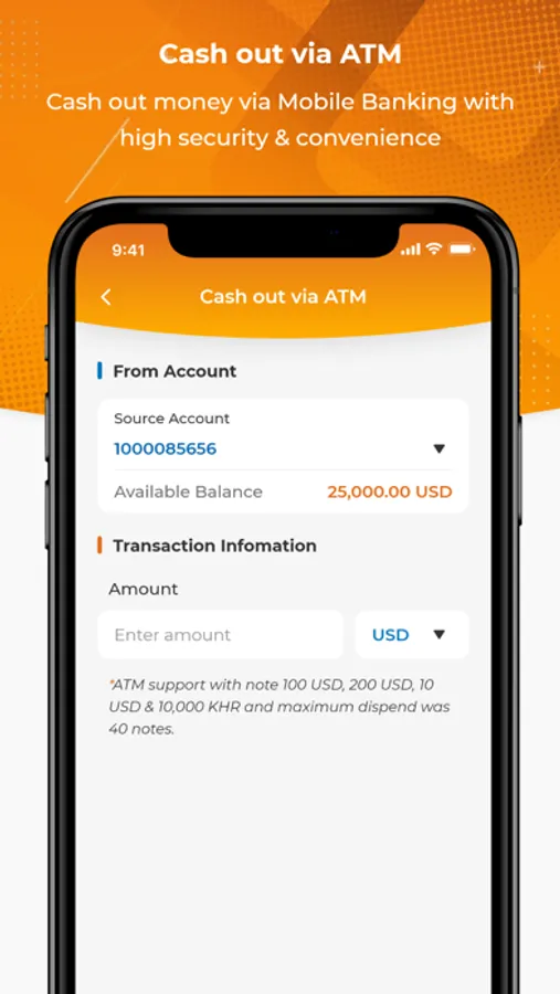 • Cash out via ATM: Cash out or transfer money to anyone without using your ATM card