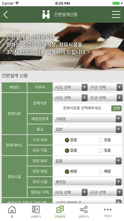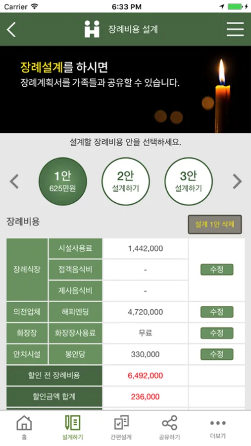 1. 직접설계 : 6가지 항목 선택으로 장례비용 설계