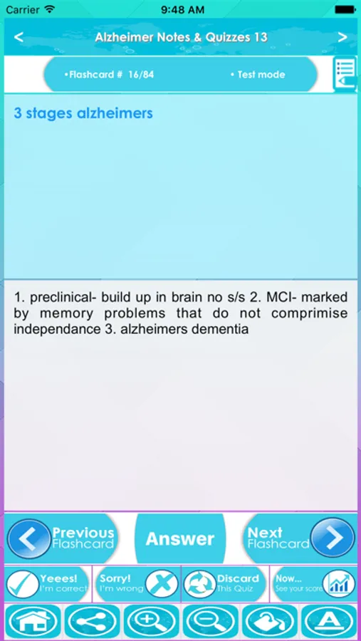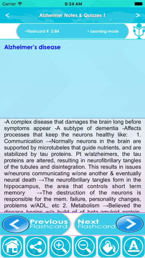 This app is a combination of sets, containing practice questions, study cards, terms & concepts for self learning & exam preparation on the topic of Alzheimer.