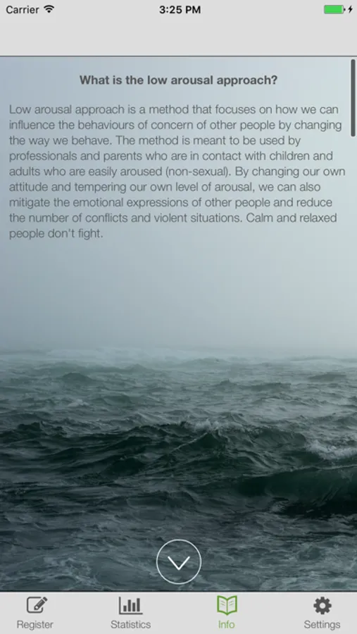 Behaviour of concern is an app designed to keep track of the levels of arousal at different times of the day in order to be able to draw conclusions about the behavioural patterns of violent outbursts and conflicts. The app was developed in collaboration with psychologists who have long experience of using the low arousal approach and working with persons displaying behaviours of concern.