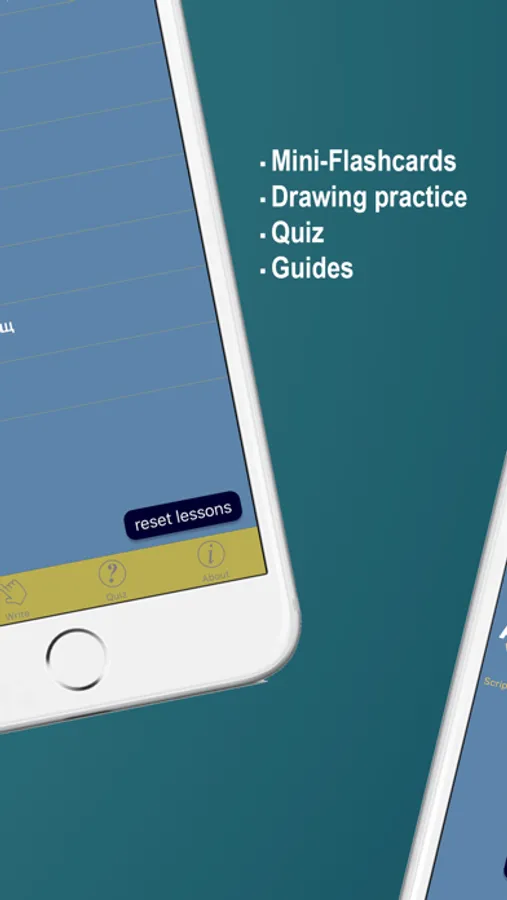 Study the letters in each lesson and write them down several times. Use the Write tab to learn to write letters in both the cursive and print scripts.