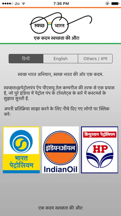 Swachh Baharat app provides our customers with a tracking tool which aims to track the cleanliness of toilets at retail outlets(Petrol Pumps), You can report the condition of the toilets by using this app and can also click photos and attach them with your complaint. The app also provides a tracking tool, with which you can track your complaint anytime, anywhere.