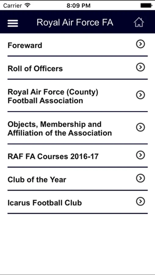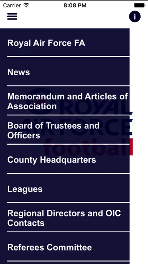 Directory and Handbook App for the Royal Air Force (County) Football Association