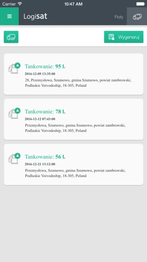- Śledzenie pojazdów na mapie w czasie rzeczywistym