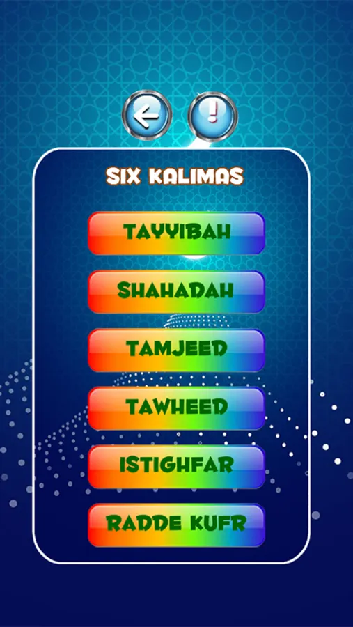 Application contain six Kalimas of Islam, Every Muslim should memorize these Kalimas & also teach our Kids to memorize them.