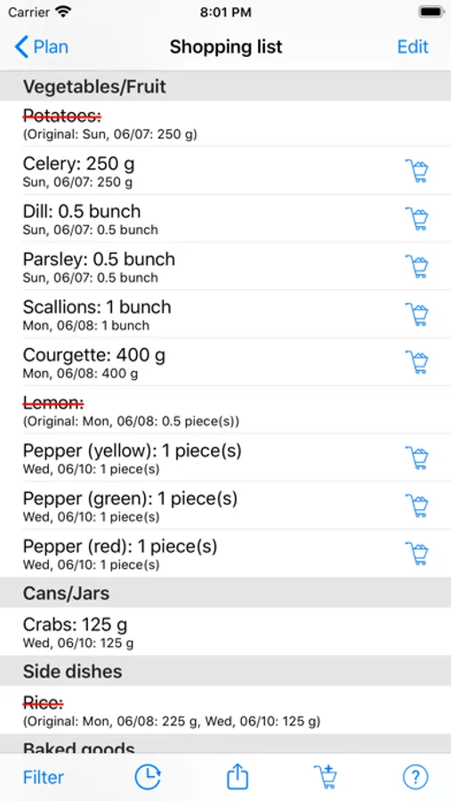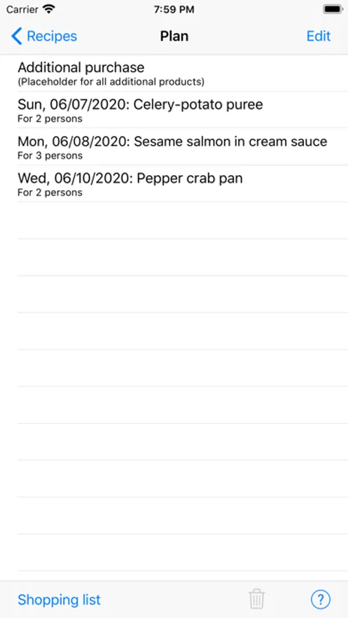 iEinkauf is an app for optimised weekly shopping in the supermarket. Before shopping, a plan is created in which recipes from cookbooks, but also individual goods for daily needs are entered. Recipes can be selected not only by name, but also by the ingredients they contain. This results in a digital shopping list that displays the required goods sorted by shelves for shopping. This shopping list can be compared with the stocks, in which individual goods can be deleted or adjusted in their required quantity. When actually shopping in the supermarket, the shopping list can be processed from the app or via widget. The order of the shelves can be adjusted so that the path through the preferred supermarket can be optimized.