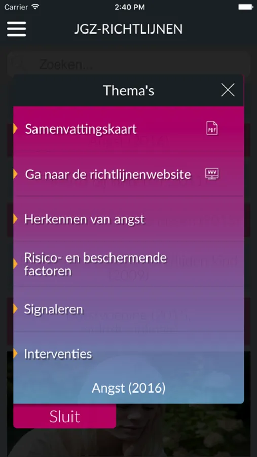 app en/of de JGZ-richtlijn te verbeteren is een feedback optie beschikbaar.