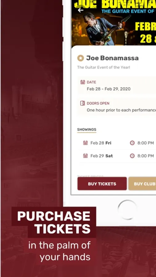 - Stay up-to-date when new Broadway shows and concerts are scheduled and purchase tickets in the palm of your hands .