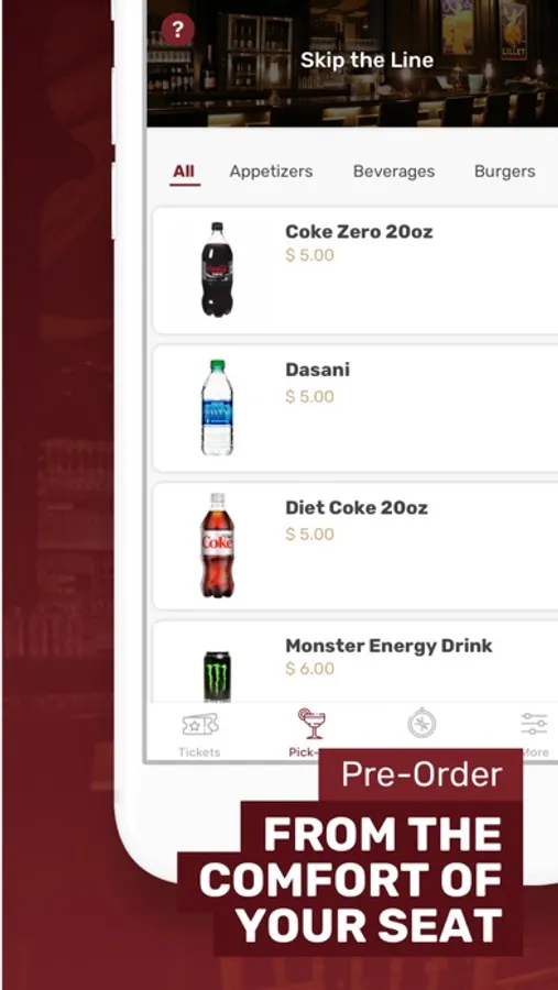 - Say goodbye to waiting in long concession lines. Pre-order beverages during an event and pick-up at an exclusive bar.