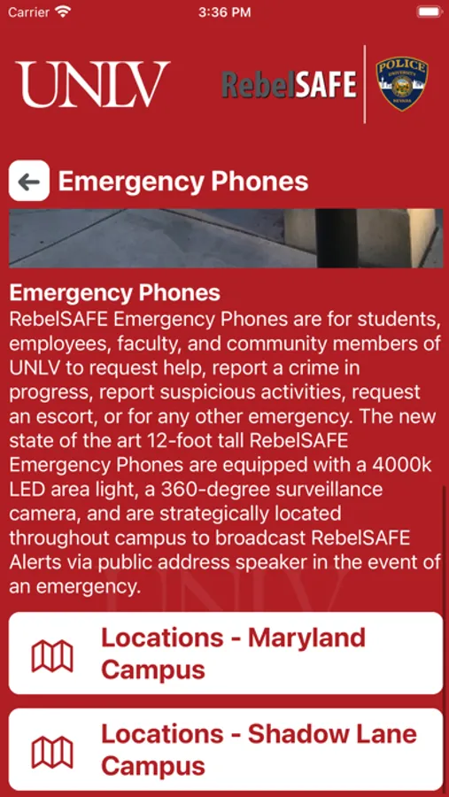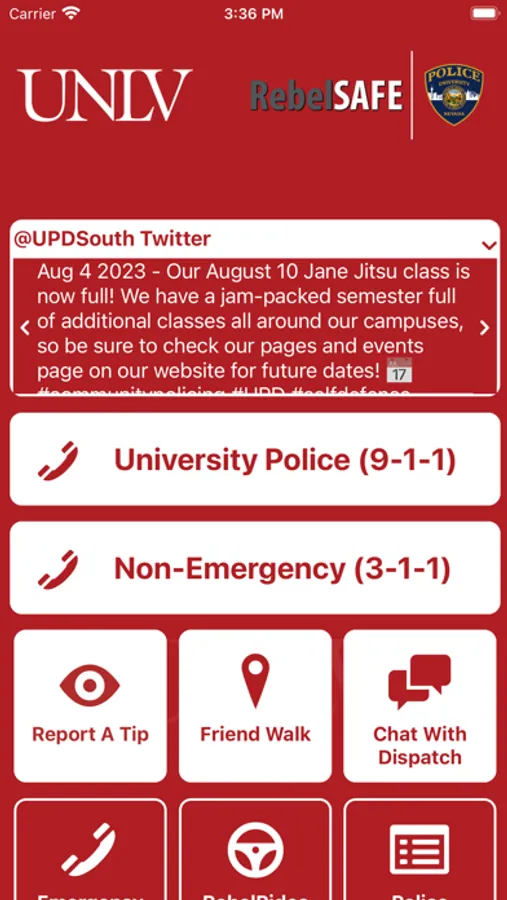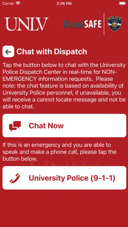 - Chat with Security: Communicate live with safety staff at UNLV via chat.